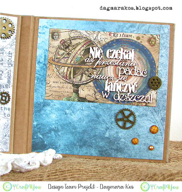 Oto kolejny album z mojej serii, tym razem steampunkowy, męski w beżach i brązach, a wewnątrz znajdziecie też turkusy i delikatne zielenie.